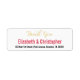Crea tu propio personalizado, personalizado, sencillo, elegante y moderno gracias nota la etiqueta de dirección de retorno. Simplemente ingrese los nombres de la novia y el marido, y dirección. Elegante gracias a devolver etiquetas de dirección para uso en boda, aniversario de matrimonio, cumpleaños, ducha de novia, ducha de bebé, vacaciones, o cualquier otro correo relacionado con la ocasión especial.