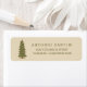 Etiqueta de dirección de retorno de árbol de Navidad con luces y bombillas en un color sólido de fondo de color marrón