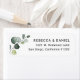 Diseñado para coordinar con nuestra colección de bodas Boho Greenery, esta etiqueta de dirección de retorno de personalizable incluye hojas de eucalipto de color agua, junto con un tipo de letra sans serif elegante en negro.