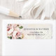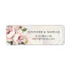 Etiqueta de devolución de boda diseñada con una elegante peonía rosa suave y rosa blanca. Artículos coincidentes en nuestra tienda Cava Party Designs.