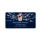 Agregue un toque encantador y rústico a sus sobres con esta etiqueta de dirección de devolución azul marino. Diseñada con luces de cuerda brillantes, un monograma de frasco de mason y acentos florales románticos, complementa perfectamente su tema de boda de otoño o granero.