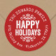 Agregue un toque festivo y rústico a su correo de vacaciones con estas etiquetas de dirección de devolución redondas que presentan un diseño de texto desgastado que dice "Felices Fiestas". Personalícelas con el nombre y la dirección de su familia, o agregue cualquier mensaje personalizado para coordinar perfectamente con su colección de tarjetas de vacaciones. Estos sellos de sobre versátiles hacen encantadoras pegatinas de dirección de vacaciones, y puede usar las herramientas de diseño de Zazzle para cambiar fuentes, colores o incluso cambiar a diferentes tamaños y formas.