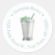 Este diseño de pegatina flexible presenta un cóctel de menta julep pintado a mano con acuarela en su vaso de metal, con borde de texto circular. Se muestra aquí para una etiqueta de dirección de devolución, pero todos los campos de texto son flexibles según tus necesidades, por ejemplo, podría ser una pegatina de agradecimiento.