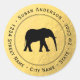 Esta etiqueta circular está decorada con una elegante imagen de elefante negro sobre un falso fondo de Relieve metalizado dorado. El diseño circular lo convierte en un sello para sobres perfecto.
