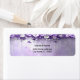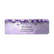 Etiqueta de dirección de devolución de hermosas flores púrpuras con perlas colgantes