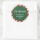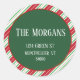 Borde rayado en Navidades clásicos colores con círculo verde forestal en el medio que mantiene la dirección personalizada en el tipo de letra serif