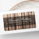 Etiqueta de dirección de devolución con tablas de madera de granero viejas y desgastadas. Tono marrón. Al otro lado hay una zona más oscura con campos de plantillas para tu nombre y dirección