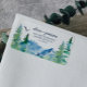Estas etiquetas de dirección de devolución de Montañas Rocosas son perfectas para una boda al aire libre. El diseño presenta un paisaje de naturaleza pintado en azul y verde con árboles de pino, pájaros y montañas de acuarela. Estas etiquetas se pueden utilizar para una boda, una ducha de novia, un evento especial o cualquier momento en que necesite una etiqueta de dirección personal.