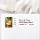 Esta etiqueta de la dirección de retorno de vacaciones presenta una imagen de arte fino vintage de la tradicional escena de la natividad cristiana, completa con la Sagrada Familia y los animales en el establo. El mensaje secundario dice en oro: "Para nosotros nace un niño". Es fácil de personalizar.