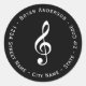 Esta etiqueta circular está decorada con una nota musical blanca.