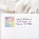 Bonito pegasus volando en una etiqueta de dirección de retorno.