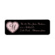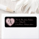 Etiquetas de dirección de retorno de boda de Moda, hechas en negro, con un corazón rosado negro, en el lado izquierdo, con un monograma negro de una letra. Personalice el texto rosa y el monograma para que se adapten a sus necesidades.