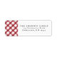 Esta etiqueta de dirección de retorno de Navidades festivos incluye un patrón de manto de comprobación de búfalo rojo y blanco de color de agua con texto para personalizar. Buscar elementos coincidentes en las tarjetas de vacaciones de color de agua de Navidades con cola de búfalo.
