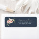 Esta etiqueta de dirección de devolución floral de rosa de jardín de eucalipto es perfecta para una boda rústica. El diseño presenta flores de rosa rosadas, sonrosadas, amarillas con hojas de eucalipto en un fondo azul marino oscuro.