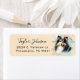 ¡Estas impresionantes etiquetas de dirección de retorno con tu nombre en un tipo de letra de guión moderno y tu dirección en un tipo de letra sans serif limpio, emparejado con una adorable imagen de color de agua de un perro pastelero de Shetland sobre un fondo de color de agua, sería perfecta para todas tus necesidades de correo!