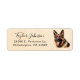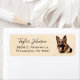 Estas impresionantes etiquetas de dirección de retorno con tu nombre en un tipo de letra de guión moderno y tu dirección en un tipo de letra sans serif limpio y emparejado con una adorable imagen de acuarela de un pastor alemán sobre un fondo de acuarela sería perfecta para todas tus necesidades de correo.