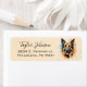 Estas impresionantes etiquetas de dirección de retorno con tu nombre en un tipo de letra de guión moderno y tu dirección en un tipo de letra sans serif limpio y emparejado con una adorable imagen de acuarela de un pastor alemán sobre un fondo de acuarela sería perfecta para todas tus necesidades de correo.