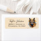 Estas impresionantes etiquetas de dirección de retorno con tu nombre en un tipo de letra de guión moderno y tu dirección en un tipo de letra sans serif limpio y emparejado con una adorable imagen de acuarela de un pastor alemán sobre un fondo de acuarela sería perfecta para todas tus necesidades de correo.