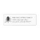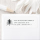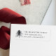 Una etiqueta de dirección de devolución simple y moderna que incluye su nombre y dirección en suave letra negra junto a una ilustración de un árbol de pino bosquejado a mano. Diseñada para coordinar con nuestra colección de vacaciones de pinos bosquejados.