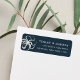 Las etiquetas de la dirección de retorno de moda costera incluyen los detalles de la dirección de retorno en letras de marfil sobre un fondo azul marino rico, acentuado con un ilustracion de estilo grabado vintage de un pulpo.
