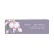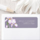 La etiqueta de dirección de devolución para bodas presenta un estilo refinado y minimalista. Delicadas iris en tonos de lila suaves se representan contra un fondo pastel, creando una atmósfera de sofisticación y tranquilidad. El diseño es moderno, aireado y perfecto para una boda elegante y romántica.