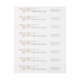 Una elegante etiqueta adhesiva de dirección de tarjeta de vacaciones diseñada por Stacey Meacham con copos de nieve metálicos dispersos sobre un fondo blanco invernal.