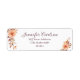 Elegantes etiquetas de dirección de devolución clásicas con flores y hojas en tonos marrones, naranjas, burdeos y amarillos. Fondo blanco.