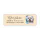 ¡Estas impresionantes etiquetas de dirección de retorno con tu nombre en un tipo de letra de guión moderno y tu dirección en un tipo de letra sans serif limpio y emparejado con una adorable imagen de color de agua de un maltés en el fondo de una acuarela sería perfecta para todas tus necesidades de correo!