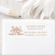 Etiquetas de dirección de regreso de repostería del panadero, con utensilios clásicos de repostería con un pastel en un soporte de pedestal en el centro, incluyendo un batidor, rodillo, manga pastelera, cuchara de madera y ramitas de trigo. El arte de línea cálida tonificada en cobre y la disposición equilibrada crean un aspecto artesanal que refleja la artesanía de la repostería y la elaboración de pasteles. Una elección profesional y artesanal para panaderos, reposteros, pasteleros, catering de postres y negocios de panadería casera que desean una tarjeta que refleje la repostería artesanal y la atención al detalle. Ideal para reunirse con clientes en degustaciones de pasteles, mercados de agricultores, panaderías emergentes, mesas de postres, ferias gastronómicas y eventos de repostería especializada. Esta versión presenta esquinas suavemente redondeadas para una presentación