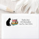 Etiqueta de dirección de devolución personalizada de gato y libros con texto personalizable.
