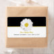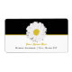 Etiqueta de dirección con fondo negro con guarnecido amarillo en la parte superior. Ilustracion de una margarita en el centro. Personaliza tu nombre y dirección en amarillo y negro en la parte inferior. Buscar elementos coincidentes en el paquete de Jill.