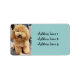 Etiqueta de la dirección de la foto de un perro moreno esponjoso.