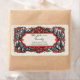 Etiqueta de dirección con temática Navidad, de diseño complejo, con elegancia victoriana y una paleta de colores rojo-negro. La tarjeta presenta intrincados ilustraciones de tinta negra de varios elementos Navidades. Esta imagen detallada es un ilustracion digital que muestra un perfecto equilibrio de diseño alegre y de buen gusto. La tinta negra crea una sensación de misterio y sofisticación.