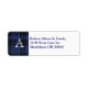 Bonita etiqueta de dirección de retorno hecha en blanco, con la tradicional lona escocesa azul y negra del clan Clark, a la izquierda. Un monograma blanco de una letra, sobre el fondo de la placa, y la dirección azul de retorno está lista para personalizar con su información. Ideal para todo uso diario y ocasiones especiales.