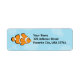 Etiquetas de dirección de pez payaso con fondo de agua azul claro. Personalizar con su propia dirección, o borre el texto e imprima en casa. Excelentes etiquetas de dirección para su familia, negocio o evento especial.