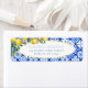 Etiqueta de dirección de regreso de azulejo azul italiano floral de limones acuarela.