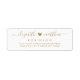 Etiquetas de dirección de regreso de pareja con letras a mano modernas y elegantes en dorado y blanco. Con una bonita plantilla de nombre de pareja con fuente de cola de milano en negro y un pequeño corazón entre los nombres sobre fondo blanco. Fáciles de personalizar con sus nombres y dirección de regreso.