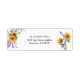 Elegante etiqueta de dirección de regreso con diseño de limón y vegetación de lavanda y girasoles.