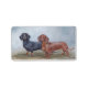 Estas etiquetas de dirección de retorno muestran una reproducción de mi pintura original de aceite de dos dachshunds.