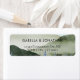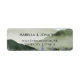 Diseño de personalizables con una naturaleza rústica de color verde acuático con fondo de colinas nieblas.