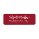 Simple y moderno tipo de guión escrito a mano en una etiqueta de dirección de retorno de fondo rojo burdeos. Simplemente agregue su propio nombre y dirección a la plantilla.