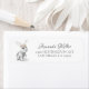 Etiqueta de dirección de retorno de conejo de conejo blanco con corona de peonías púrpura bonitas para una ducha de novia, ducha de bebé, cumpleaños o correspondencia diaria.