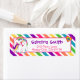 Haga aparecer los sobres de invitación con estas etiquetas mágicas de direcciones de retorno de unicornio que coinciden. Presenta unicornio arcoiris con corazones y fondo rayado. ¡Invitación coincidente disponible!