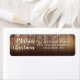 Etiquetas de dirección de retorno de vacaciones de Navidad rústicas para que las personalices con el nombre de tu familia y los detalles de tu dirección en un fondo de copos de nieve de madera rústica. Diseñado por Thisisnotme©