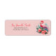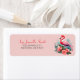 Esta es una etiqueta de dirección tropical con temática flamingo con un fondo rosa suave, un guión elegante para el nombre y un ilustracion acuático vibrante de un flamenco rodeado de hojas tropicales y flores de coral. Combina un encanto lúdico con un toque de elegancia, perfecto para el correo de verano, eventos en la playa o papelería personal.