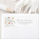Esta etiqueta de dirección de devolución de jardín de flores silvestres coloridas es perfecta para una boda rústica. El diseño presenta flores silvestres color burdeos, rojo, azul marino, azul, amarillo y rosado pintadas a mano sin costuras con hojas botánicas.