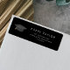 Estas etiquetas de dirección de retorno de graduación negra oscura de moda son perfectas para un fiesta de grado moderno. El sencillo diseño oscuro presenta una sofisticada tipografía clásica en blanco y negro con un gorra de graduación de acuarelas en negro y oro. Estas etiquetas se pueden usar para tu fiesta de graduación, invitaciones y tarjetas de agradecimiento.