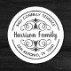 Etiqueta de dirección de retorno redondeada personalizado adornada con un emblema de trabajo decorativo que rodea el apellido. Inserte su nombre y dirección en lugar del texto de ejemplo que se muestra en la plantilla de diseño. Diseñado para ti por Blackberry Boulevard.