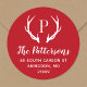 pegatinas de dirección de retorno de ronda personalizado personalizados con su monograma y dirección familiar. Este moderno diseño rústico presenta un monograma inicial con renos en tonos rojos y blancos festivos. Utilice las herramientas de diseño para cambiar el color de fondo y los tipos de letra para personalizar de su propio diseño único. Perfecto para tarjetas de vacaciones, papel de boda y más.