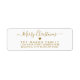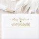 Elegante, moderno, dorado y blanco Navidades con letras de mano de la familia Retorno Etiquetas de direcciones. Presentando una caligrafía escrita a mano con un guión de letra de cola-swash con la frase "Feliz Navidad", un pequeño motivo de amor al corazón. Ideal para la temporada de vacaciones de los Navidades, fácil de personalizar con tus nombres y la información de la dirección de retorno.